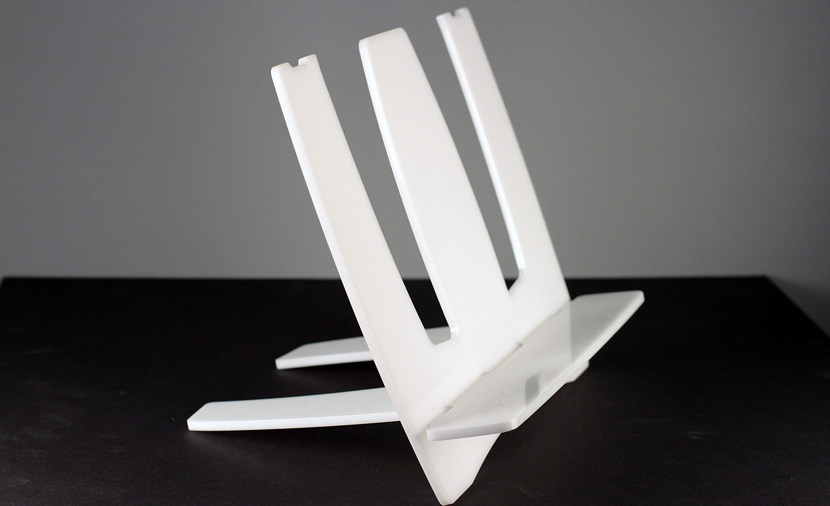 Low cost desktop music notes and document Easel, foldable flat and portable in a 'gig bag' matching notes / magazine size. Design for scalable and on demand production with zero capital investment. Customizations include retailer and client's own branding.