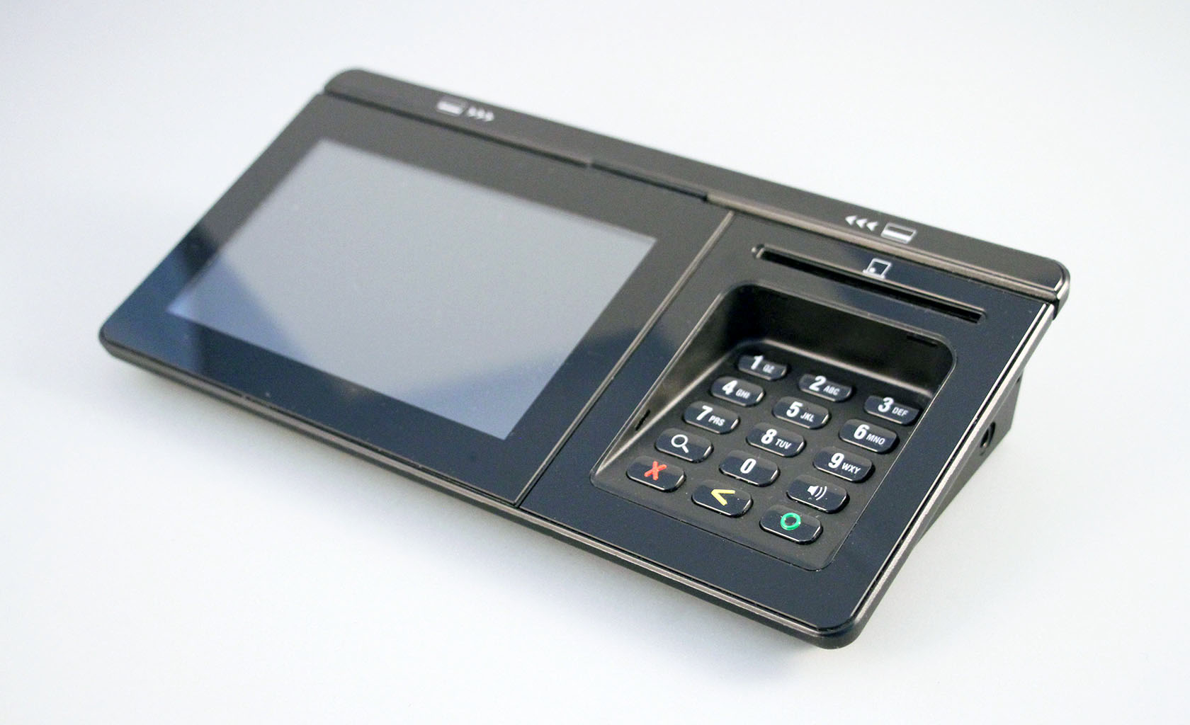Payment Terminal, with 5" Touch Screen (Signature Capture), Wi-Fi & Bluetooth & 4G/LTE connectivity, with high end security features. Chip (Smart) Card reader, Card 'TAP' (RFID) and Magnetic Strip Card Reader. Optional PIN Shield.