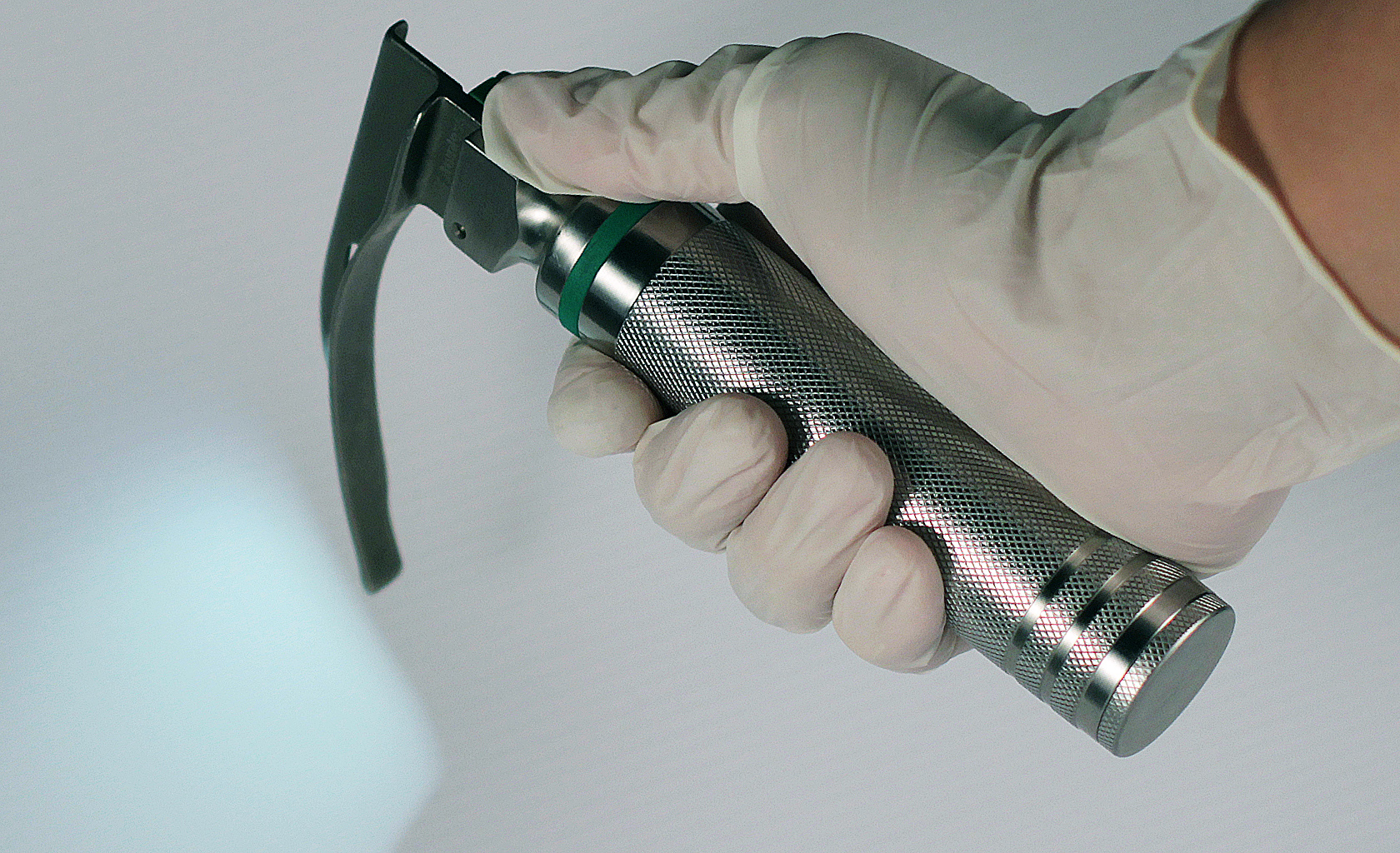 Proctoscope and Laryngoscope handle, steam sterilizable medical device with Alkaline or optional rechargeable battery, high intensity light, LED, universal stainless steel handle; modular design, accessory snap-on light activation provides intuitive operation.